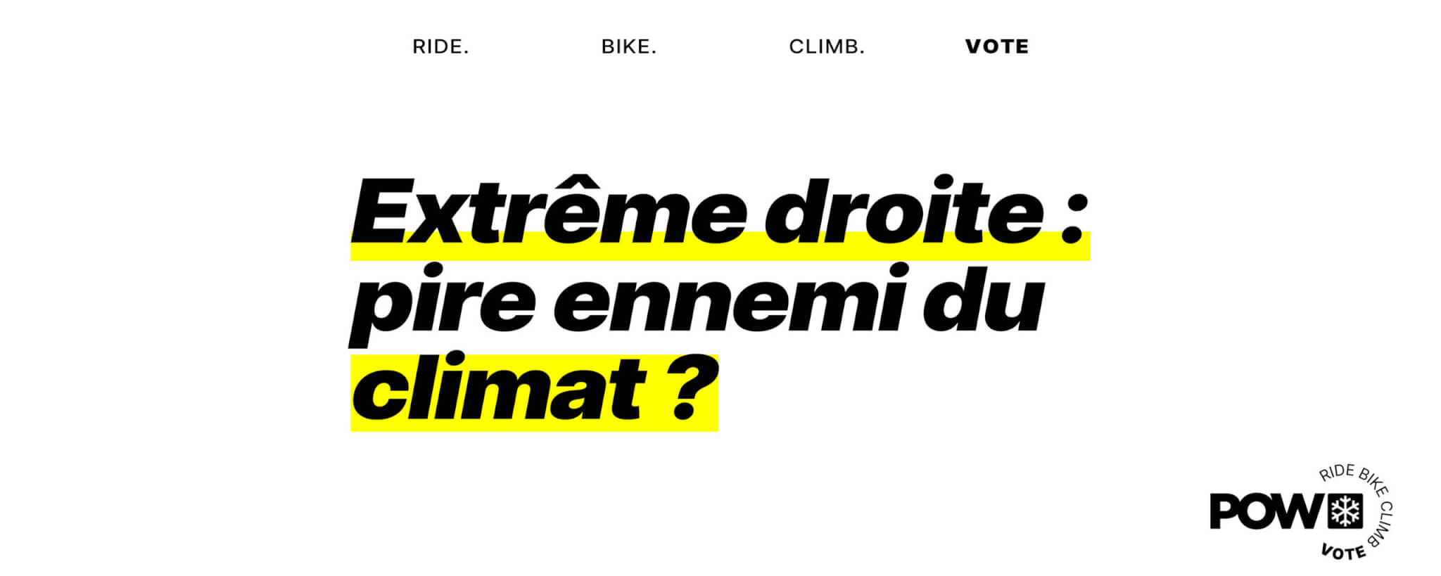 Que ce soit à échelle nationale ou européenne, le RN s’oppose à tout ce que POW défend. Tous leurs votes sur l’ensemble des sujets vont à l’encontre du climat et de la justice sociale. Pour approfondir sur ce point, même s’il ne mentionne que les mesures européennes, vous pouvez retrouver notre scoreboard pour vous rendre compte de la fibre écologique fantôme de ce mouvement.